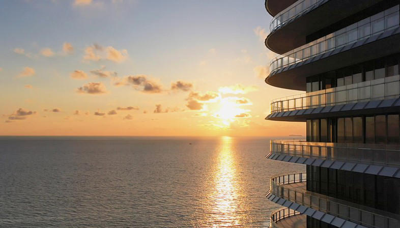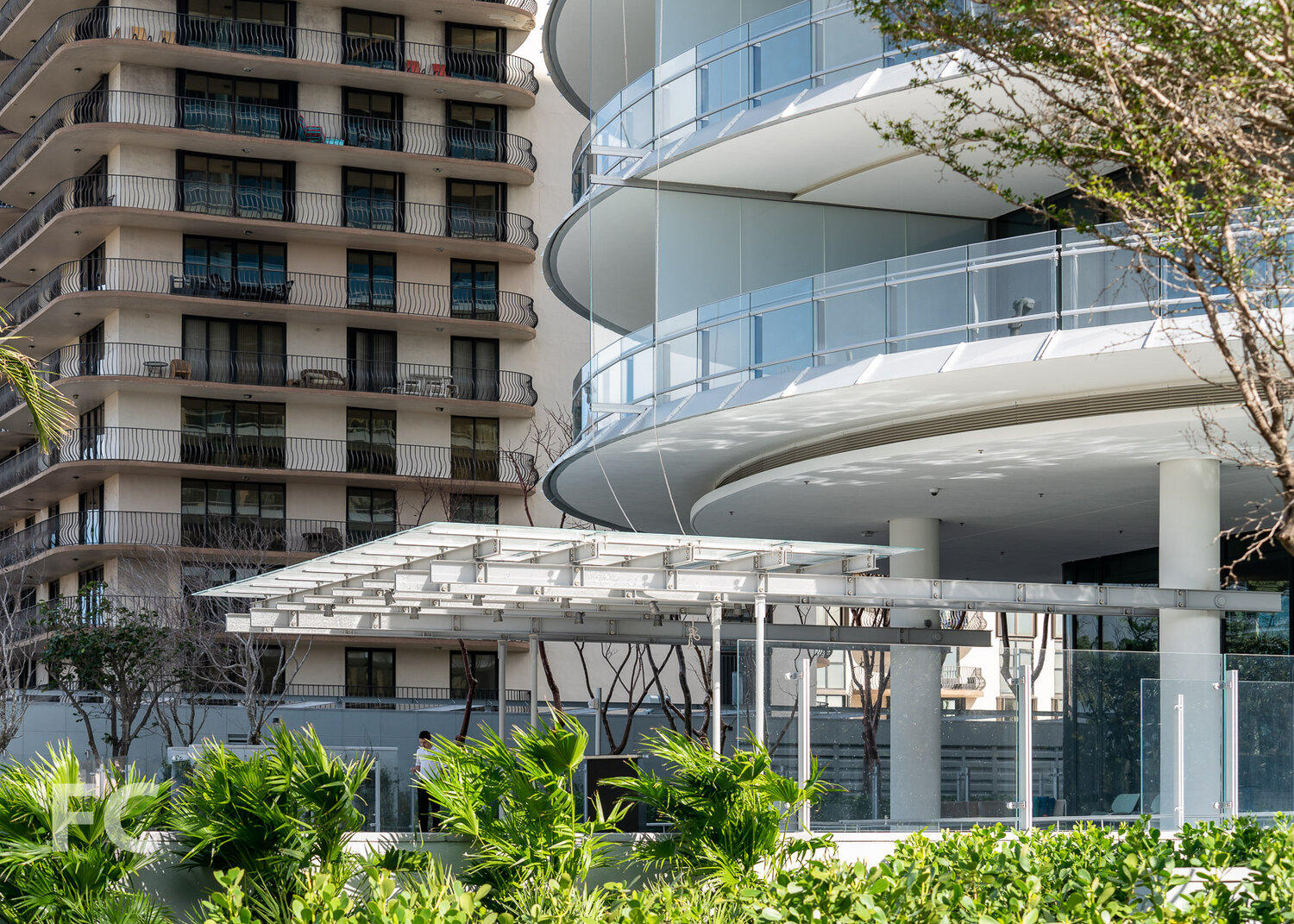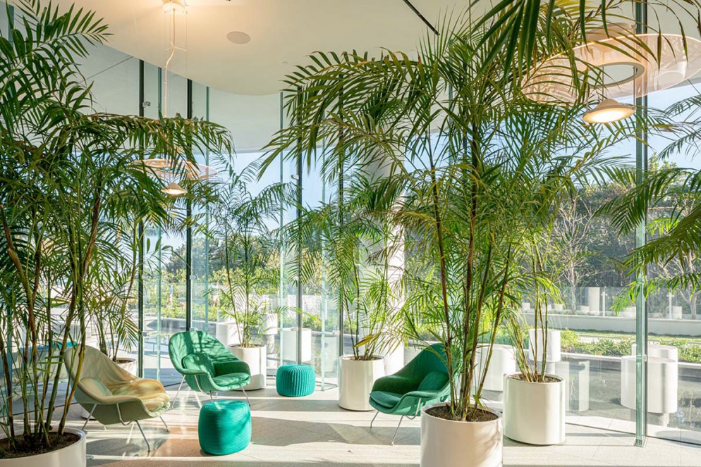 Designed by Renzo Piano and built north of the city of Miami. Stunning villas in a luxury condominium. Soglianese created the glass pillars that support the glass window in the main atrium and the glass dividers on the very long terraces.