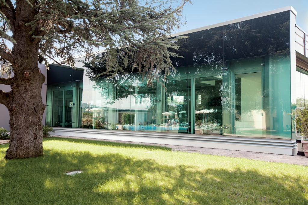 Tipologia: Realizzazione di struttura in carpenteria metallica e facciata doppia pelle per nuovo edificio ristorante Relais Villa Valfiore.